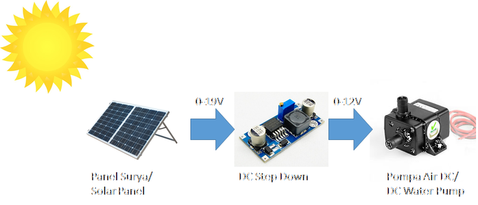 Pemanfaatan Energy Matahari dengan Solar Cel untuk pompa air irigasi. Beberapa hal yang perlu di perhatikan dalam pemasangan pompa air tenaga surya antara lain. Sumber daya yang digunakan tentunya berasal dari tenaga surya yang telah diubah menjadi energi listrik menggunakan panel surya.