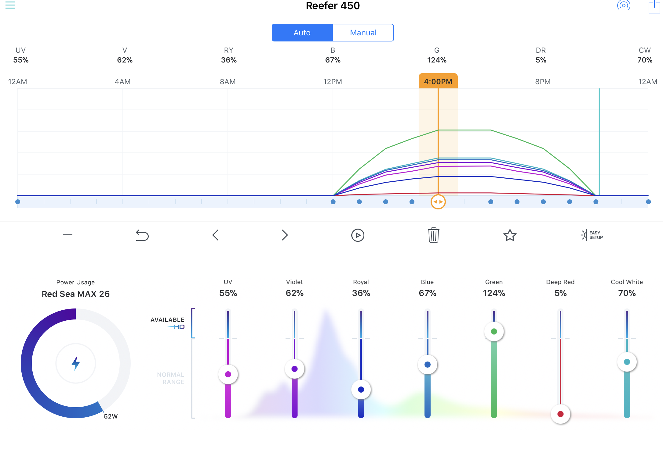 Deep red 6 Cool white 26 I have a red sea reefer 170. Red Sea Hydra 26 HD LED 6 Acclimation To set and activate the acclimation option click on EDIT and then click on the ONOFF button. You can simulate moonlight for a warm glow or.