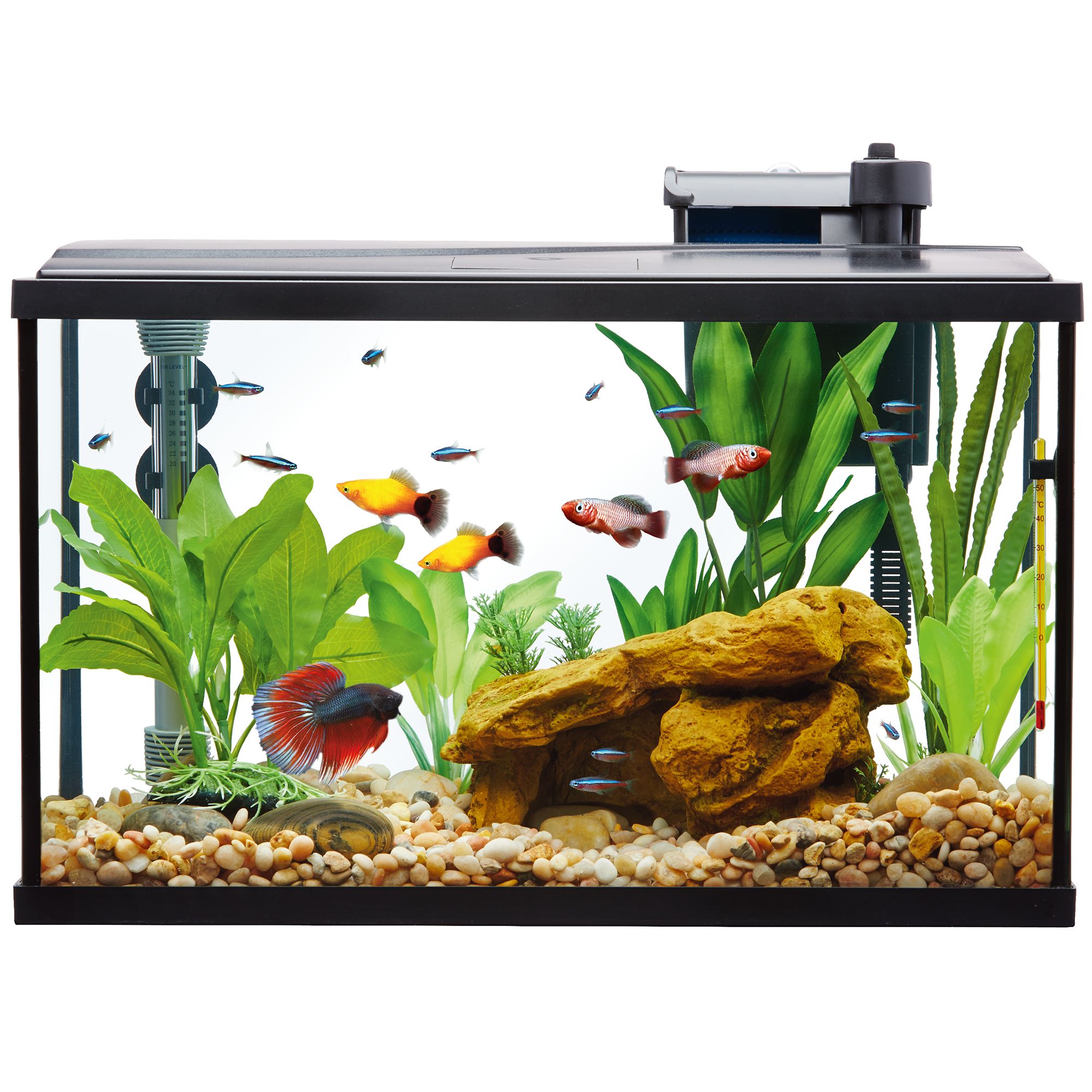 Tetra 55 Gallon Aquarium Kit with Fish Tank Fish Net Fish Food Filter Heater and Water Conditioners. 20 Gallon Fish Aquarium Starter Kit Review. Acrylic aquariums are much lighter durable and less prone to leaks and manufacturers can bend and shape tanks into many.