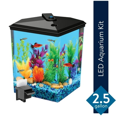 Includes hood with seven watt incandescent lighting state-of-the-art undergravel filter air pump and tubing fish food sample and water conditioner samples plus set up and care guides. If costs are an issue then it may be worth purchasing a fish tank starter kit. Compact design fits almost anywhere - perfect for dorm office or home.