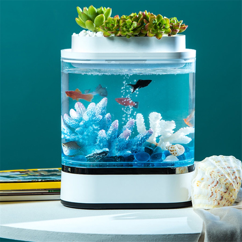 Aquarium Mini Elektrik Ikan Hias Dekorasi Akuarium Digital Pompa Air Otomatis Lampu Meja Kecil Usb Shopee Indonesia