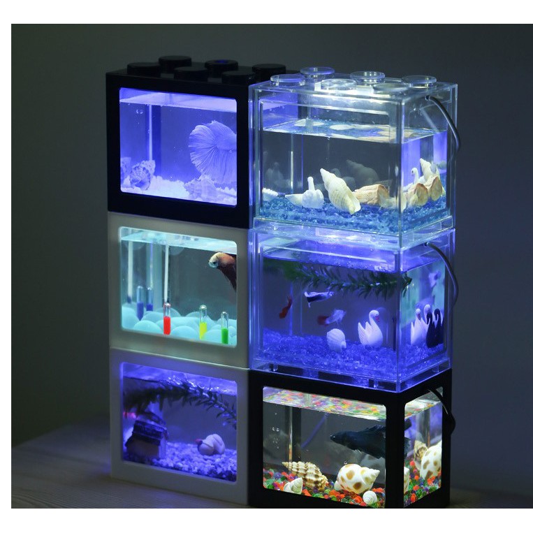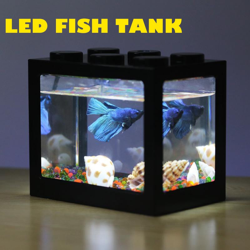 Miniature Fish Tank Mini Aquarium Building Block Fish Tank With Led White Light Shopee Malaysia