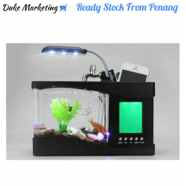 Aqua Tank Premium Mini Usb Lcd Desktop Lamp Light Fish Tank Aquarium Led Clock Murah Shopee Malaysia